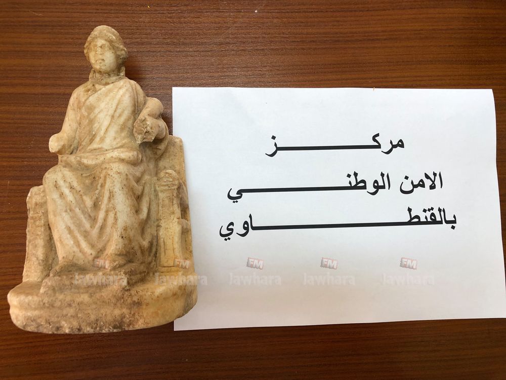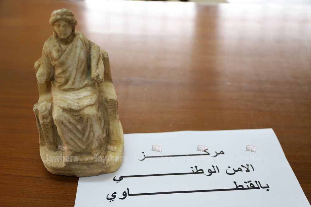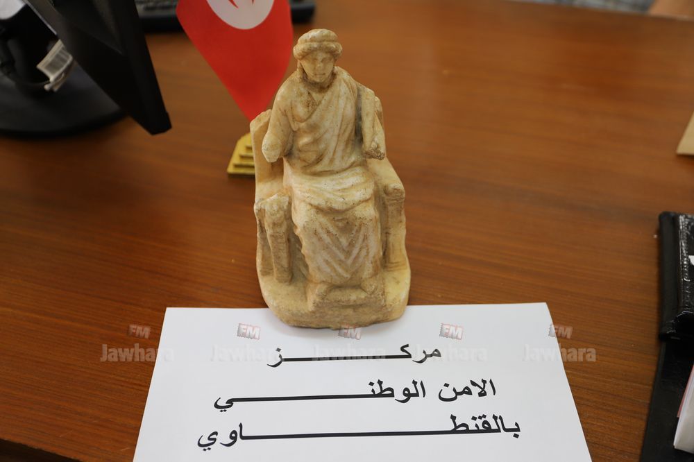 تمكن أعوان مركز الأمن الوطني بالقنطاوي من إلقاء القبض على شخص مفتش عنه و بتفتيشه تمّ التفطن لوجود صورة بهاتفه الجوال لقطعة أثرية.