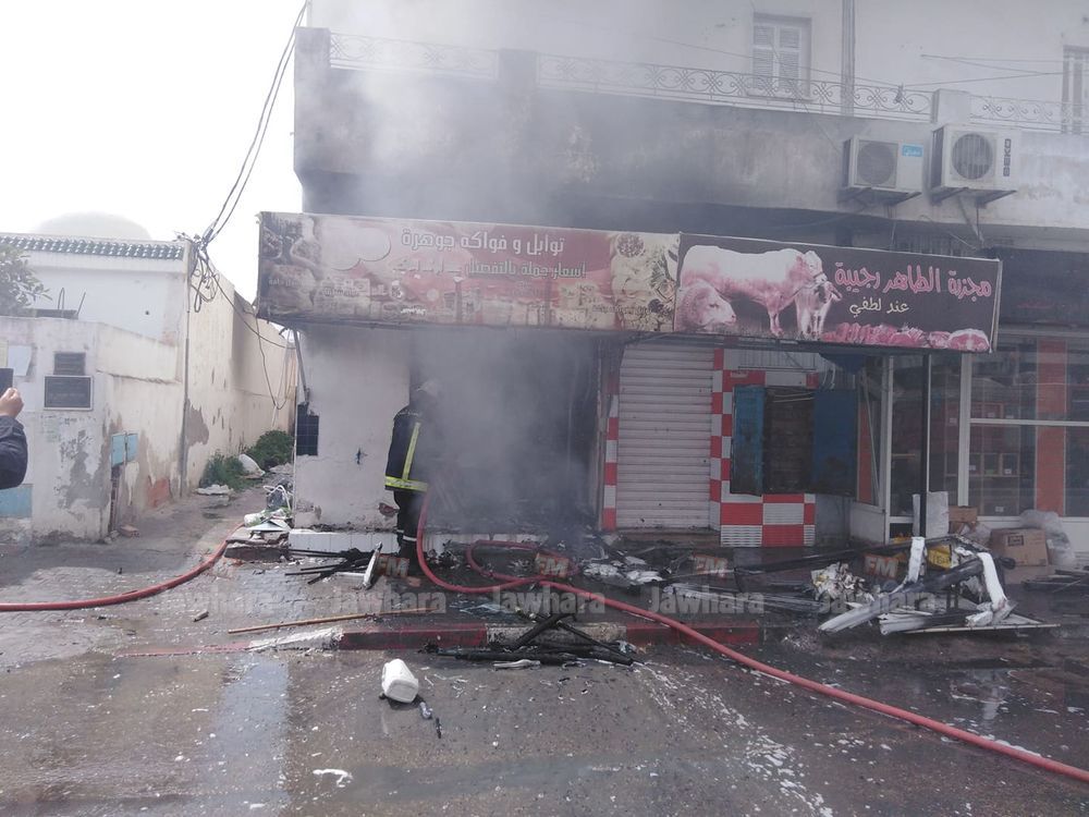اندلع صباح اليوم الأربعاء حريق بمحل لبيع المواد الغذائية، كائن بمنطقة جوهرة سوسة.