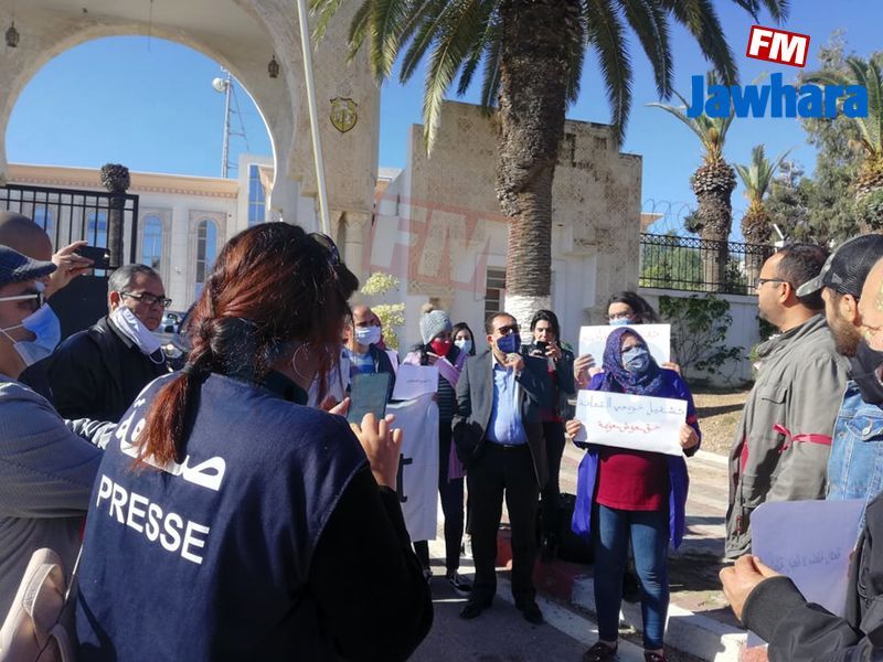 نفذ الصحفيون في ولاية سوسة اليوم الخميس 26 أكتوبر 2020 وقفة احتجاجية أمام مقر ولاية سوسة في إطار يوم الغضب الذي دعت إليه النقابة الوطنية للصحفيين التونسيين تنديدا ب"تنكر الحكومة لتعهداتها تجاه القطاع".