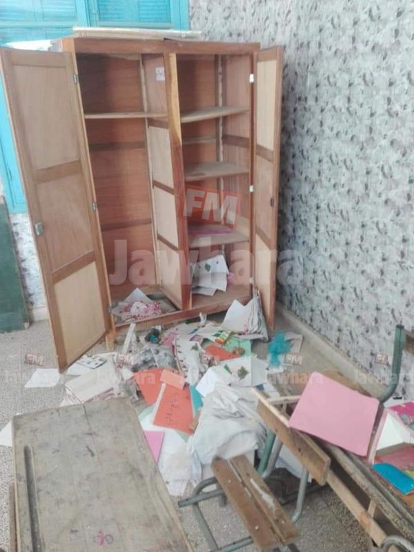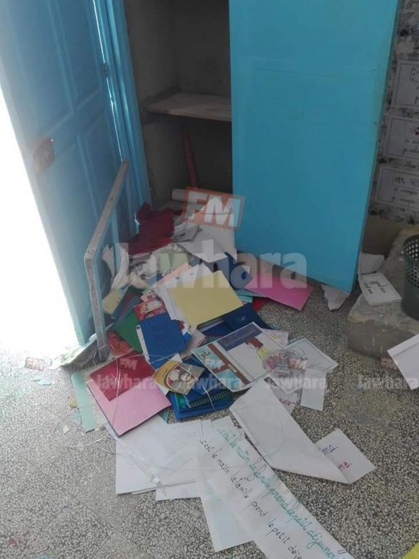 تعرّضت ليلة البارحة المدرسة الابتدائية بالرقي من معتمدية سيدي بوزيد الغربية الى عملية خلع وتخريب الابواب وتهشيم بلور النوافذ من قبل مجموعة مجهولة التي عمدت إلى العبث بمحتويات 5 قاعات تدريس بالمدرسة والاضرار بالتجهيزات و معدات التدريس بها، وفق مراسل "الجوهرة أف أم".
