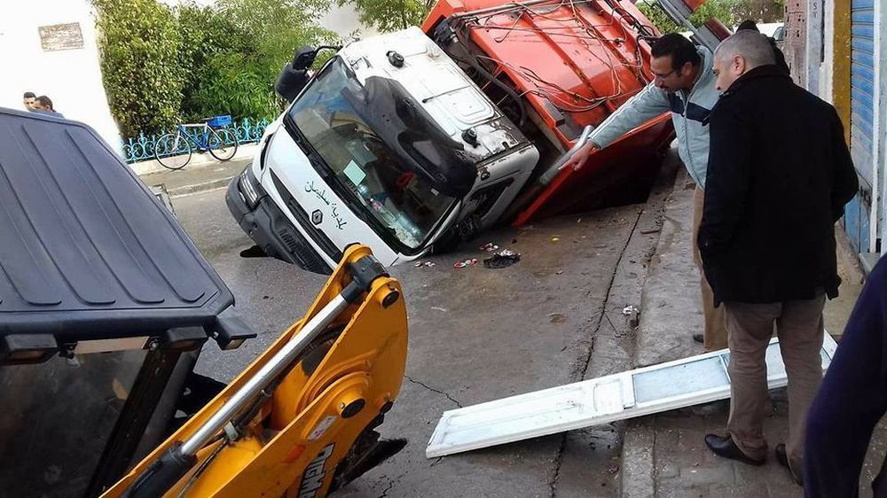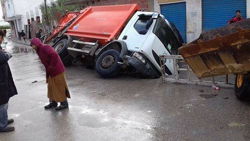 و أضاف المصدر نفسه أن جرافة تابعة لبلدية سليمان سقطت هي بدورها في حفرة بعد أن أتت لإخراج الشاحنة، دون تسجيل أي أضرار بشرية.