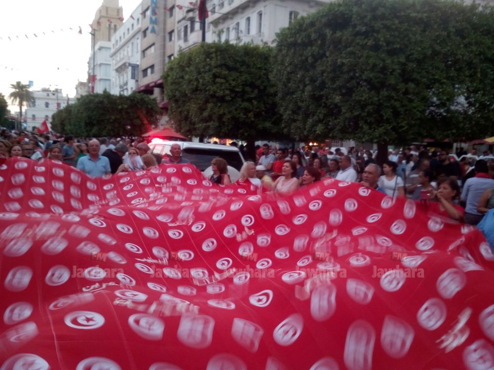 وأكدّت مراسلة "الجوهرة أف أم" أنّه تم خلال المسيرة رفع شعارات مساندة لتقرير لجنة الحريات.