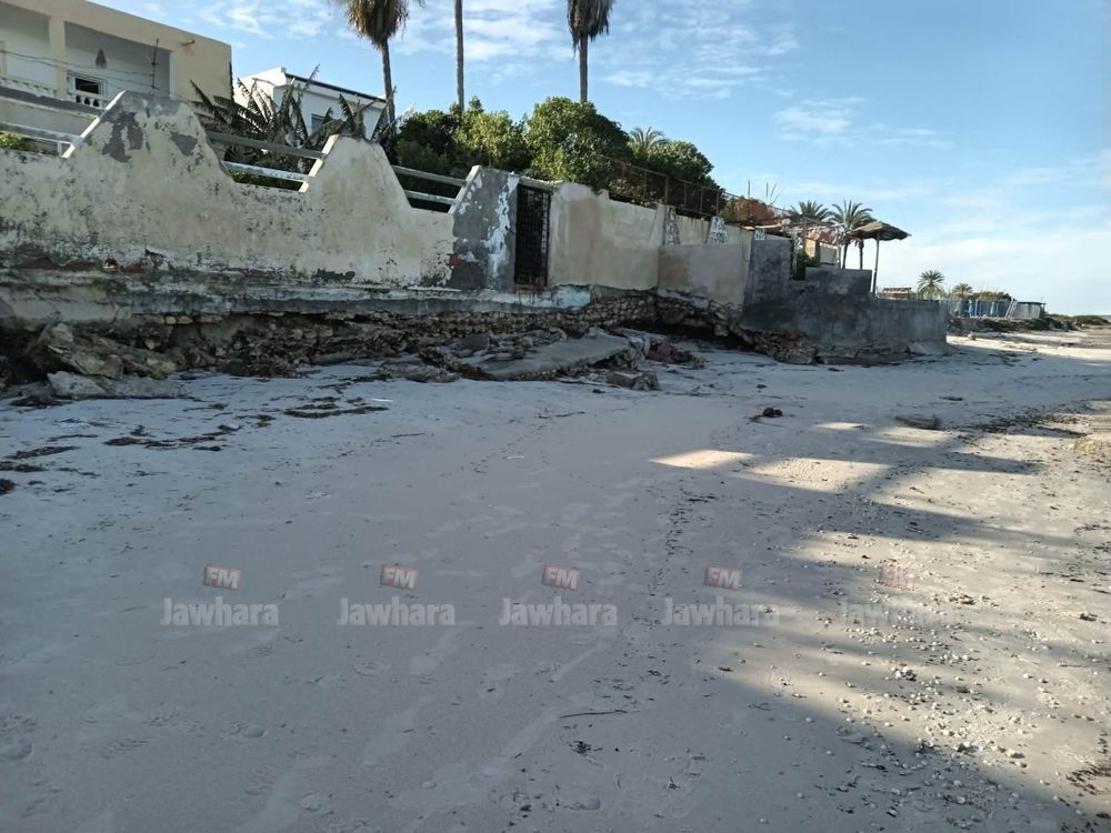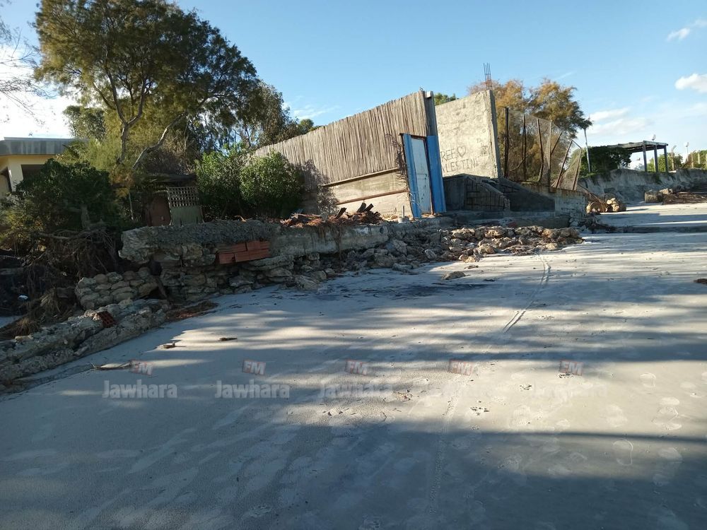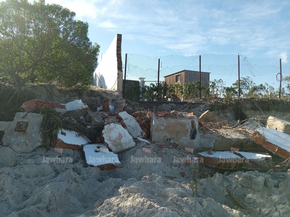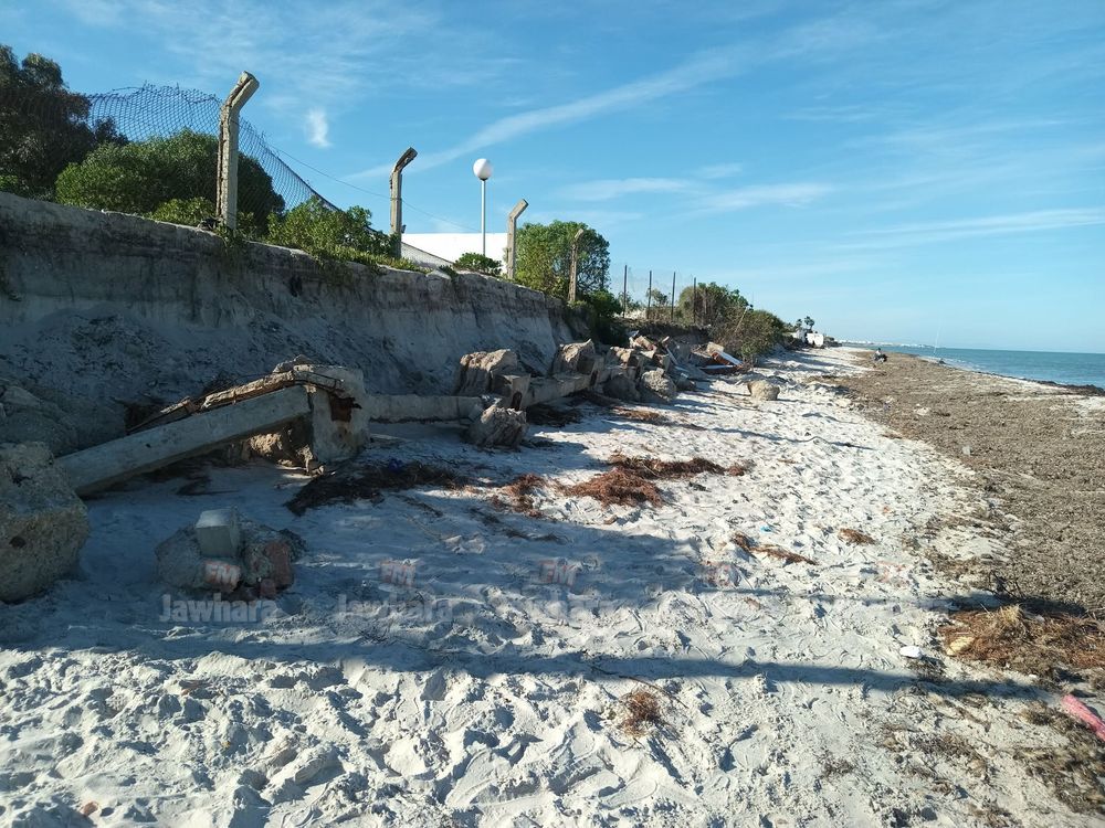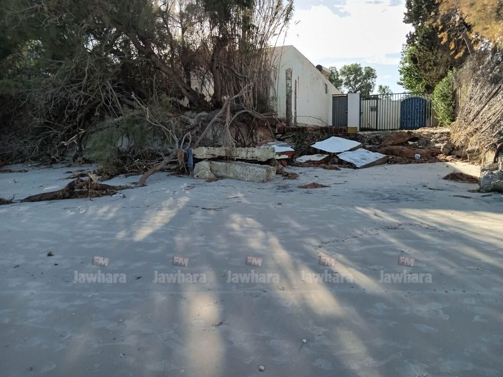 وخلّف تقدم البحر وهجوم الامواج انهيارا لعدد كبير من هذه الاحداثات التي تم بناؤها على الملك العمومي البحري دون ترخيص. كما كشفت هذه التقلبات الجوية عن تجاوزات بخصوص استخدام قنوات بدائية لصرف المياه بشكل عشوائي في البحر والشاطئ.