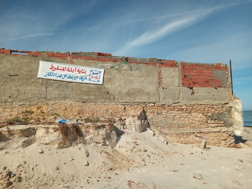 بدأت بلدية شط مريم من ولاية سوسة في التحذير من احداثات فوضووية آيلة للسقوط على الشاطئ ووضع لافتات عليها اثر التقلبات المناخية الأخيرة والمنخفض الجوي العنيف الذي رافقه تقدم غير مسبوق للبحر وامواج عاتية أدت الى انجراف الشاطئ.