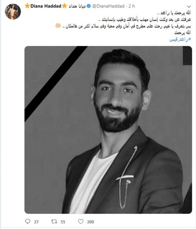 وأضافت : "الله يرحمو راح بعمر كتير زغير، ما كنت بعرفو شخصيا ومرات كانت تعليقاتو قاسية بحقي، بس مننحني قدام الموت ومنصلي لروحو. الله يصبّر أهلو".