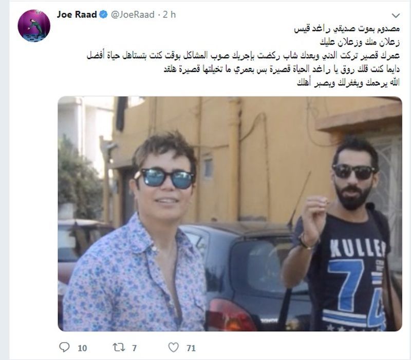 توفي ظهر اليوم الاثنين الصحفي اللبناني، راغد قيس صاحب صفحة "شرطة المشاهير"، حيث نعاه العديد من الفنانين والمشاهير في العالم العربي بشكل عام.