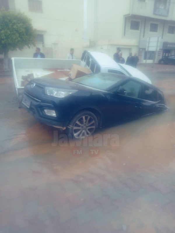 صفاقس: انزلاق سيارتين داخل حفرة (صور)