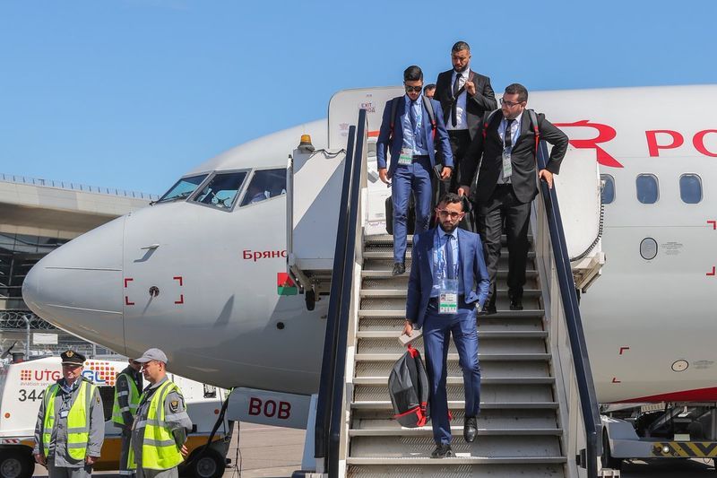 وحطت الطائرة التي نقلت وفد المنتخب من كراسنودار بمطار موسكو في حدود الساعة الواحدة زوالا لتتحول بعدها البعثة مباشرة إلى نزل أمبريال بارك عبر الحافلة التي وضعتها لجنة تنظيم المونديال على ذمتها.