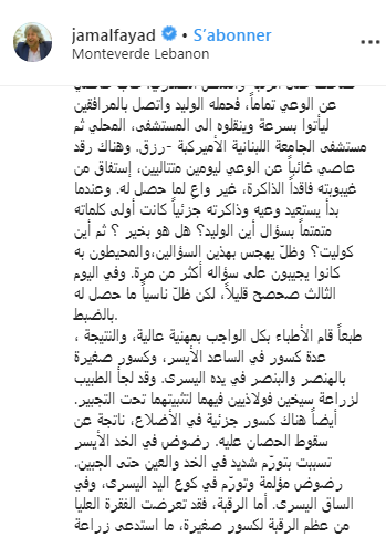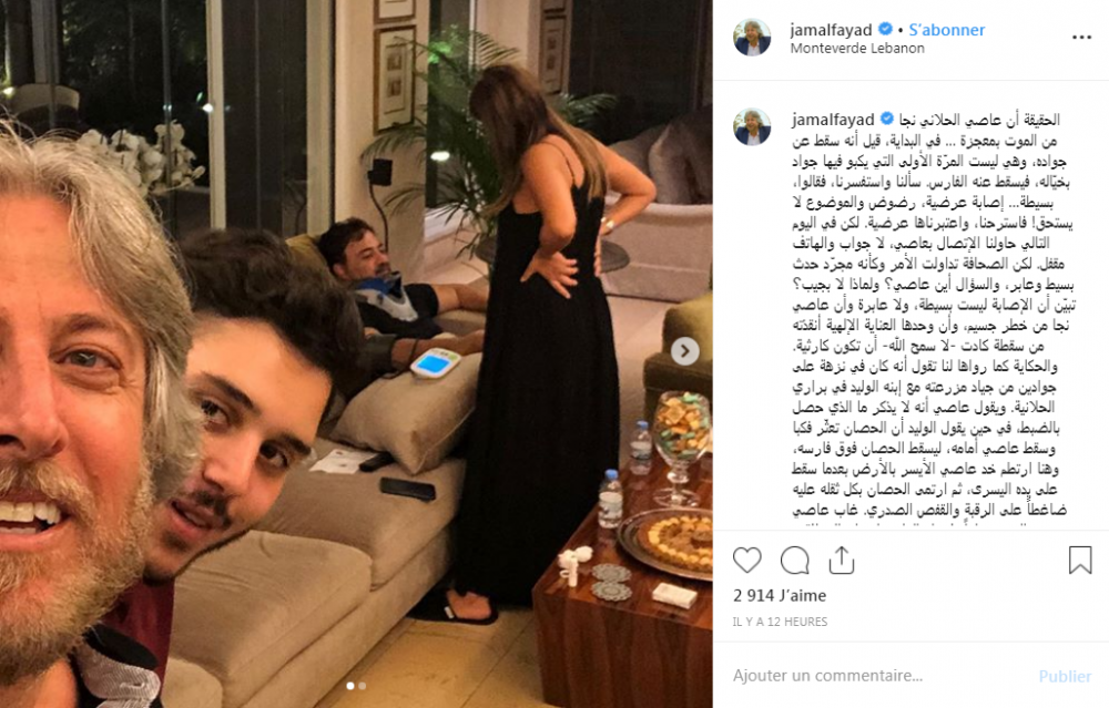 و أشار "فياض" إلى أن صديقه نجا من خطر جسيم، وأنّ وحدها العناية الإلهية أنقذته من سقطة كادت -لا سمح الله- أن تكون كارثية.