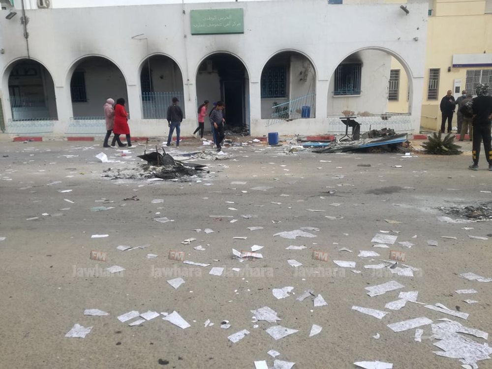 أقدم محتجون في عقارب من ولاية صفاقس على تخريب مقر مركز الحرس الوطني بالجهة و اضرام النار فيه وذلك على اثر انسحاب القوات الأمنية.