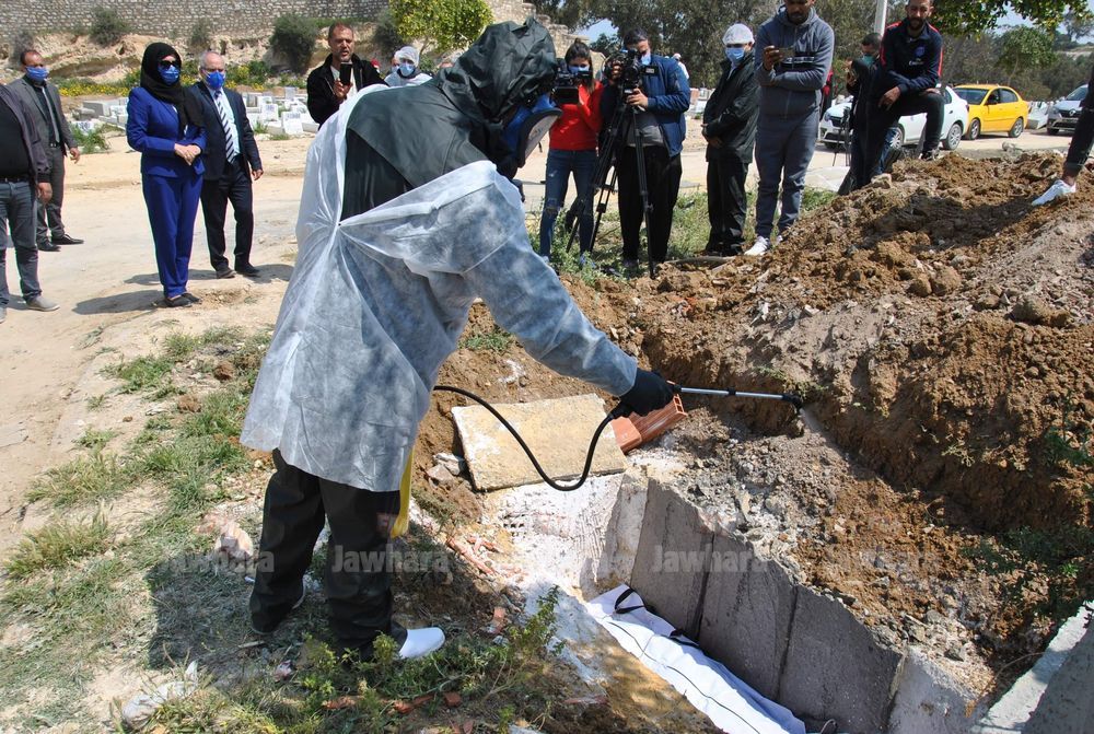 وأكدت عبد الرحيم في تصريح للجوهرة أف أم أن الهدف من هذه العملية هو تسليط الضوء على كيفية نقل الميت المصاب بالكورونا وتعقيمه ودفنه مع أخذ كل الإحتياطات بالنسبة للأعوان المكلفين بعملية الدفن.