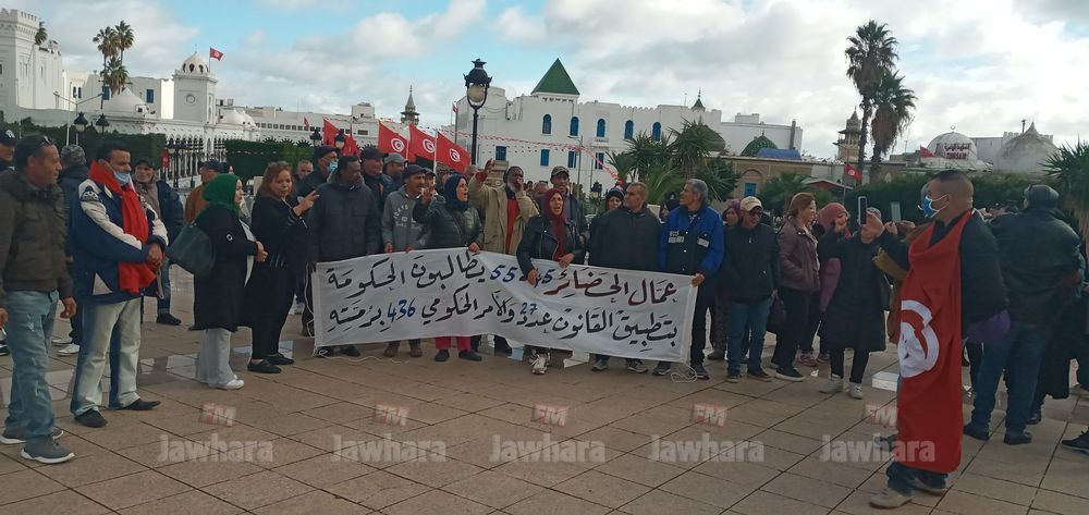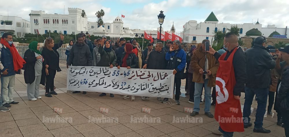 نظم اليوم الاثنين عدد من عمّال الحضائر وقفة احتجاجية بساحة الحكومة بالقصبة، للمطالبة مجدّدا بتسوية وضعياتهم.