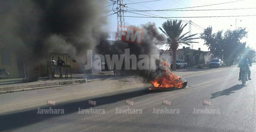 قام منذ قليل عدد من المحتجين بمعتمدية المظيلة بغلق الطريق وحرق للاطارات المطاطية على مستوى الطريق الرئيسية بمعتمدية المظيلة.