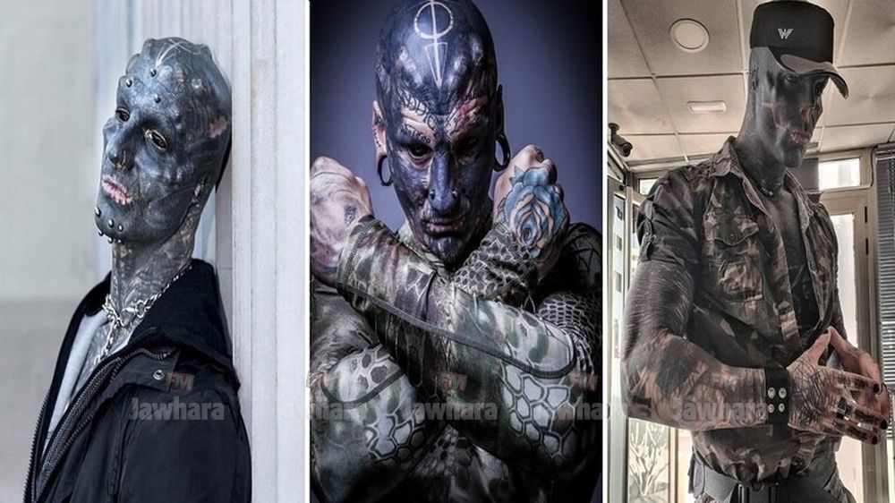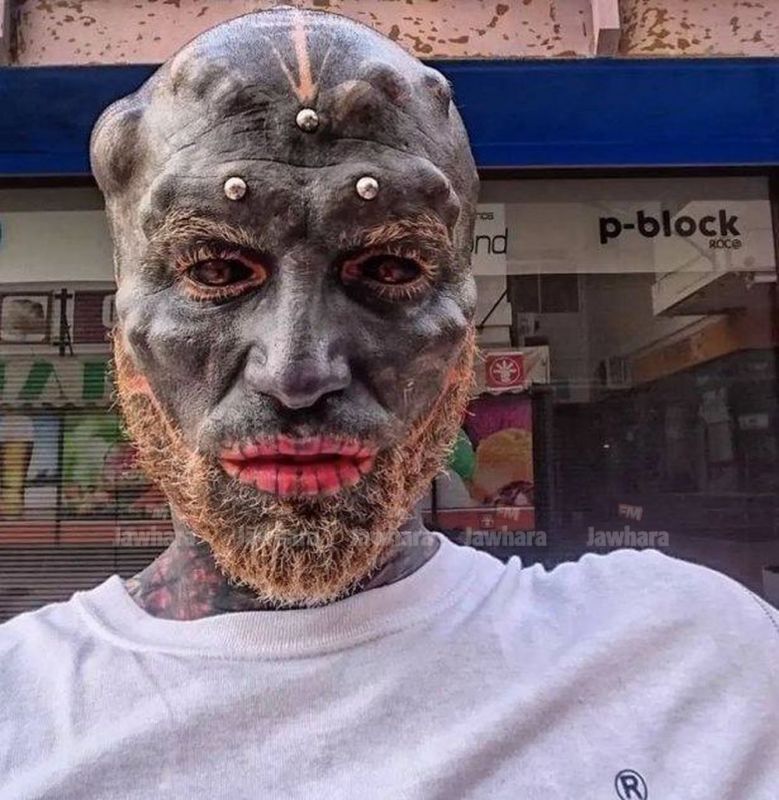 وبحسب صحيفة "ميرور"، يكافح الشاب لجعل نفسه أشبه بكائن فضائي، حيث قام بتعديلات كبيرة على شكل وجهه، بما في ذلك مقلتا عينيه، وغطى نفسه بالوشم ليبدو كأنه كائن أسود من خارج كوكب الأرض.