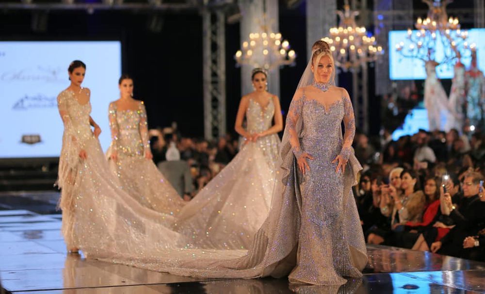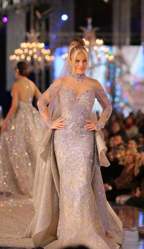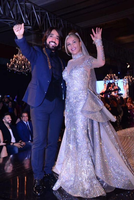 فقد ارتدت الفنانة اللبنانية نيكول سابا فستان زفاف مرصع بالألماس من أعمال المصمم هاني البحيري، في ختام الديفيليه العاشر للمصمم المصري العالمي.