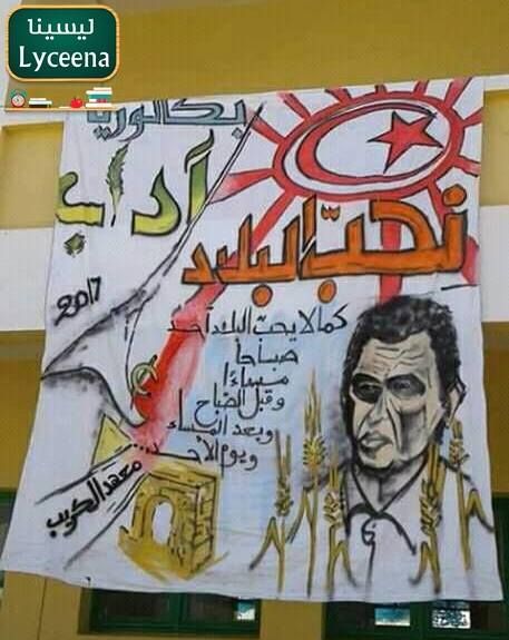 تلامذة باكالوريا الآداب بمعهد الكريب اختاروا الشاعر "الصغيّر أولاد حمد" و أحد أشهر أبياته الشعرية "أحُبّ البلاد كما لم يحُب البلاد أحد، صباحا مساء و قبل الصباح و بعد المساء و يوم الأحد، و الراية الوطنية في شكل شمس تشع على سنابل القمح الذهبية.