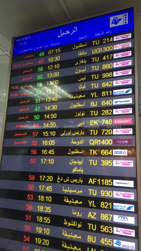 وأكد عدد من المسافرين للجوهرة أف أم، أن الرحلة المبرمجة إلى تركيا على الساعة 7:15 صباحا، على متن الخطوط التونسية، لم تنطلق بعد رغم مرور أكثر من 6 ساعات، دون أن تقدم الناقلة الوطنية أي توضيحات في الخصوص.
