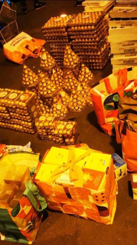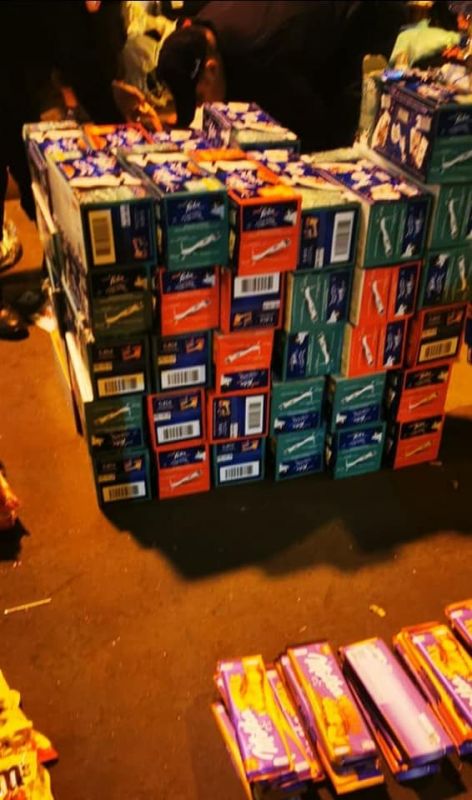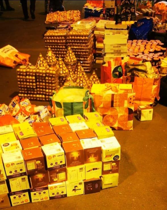 - 1042 علبة شكولاته مختلفة الأنواع والأحجام.