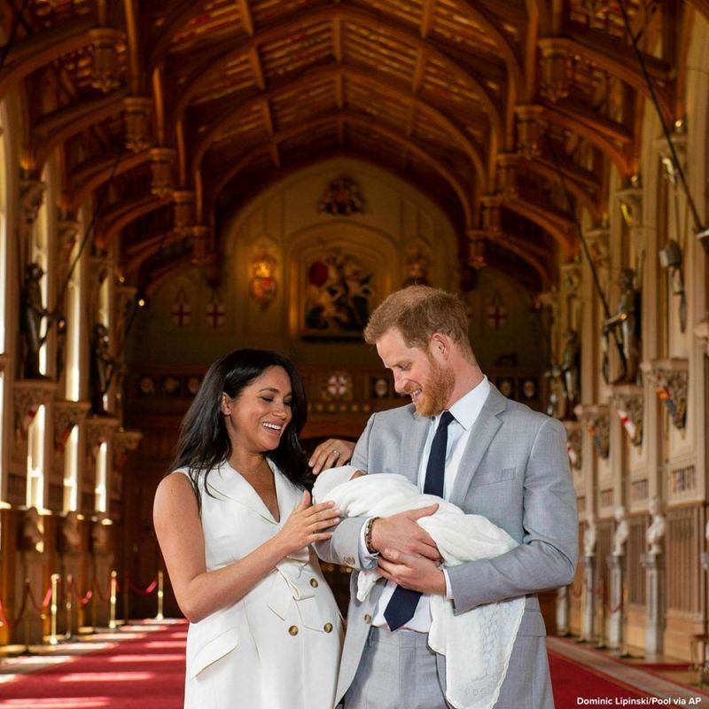 ظهر الأمير هاري وزوجته ميغان ماركل -دوق ودوقة ساسيكس- أمام وسائل الإعلام المختارة لالتقاط أول صورة لطفلهما حديث الولادة، البالغ من العمر يومين فقط، وذلك في قاعة سانت جورج بقلعة وندسور.