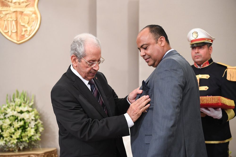 تولّى رئيس الجمهورية محمد الناصر، اليوم بمناسبة إشرافه على موكب الاحتفال باليوم الوطني للثقافة، منح الصنف الأكبر من الوسام الوطني للاستحقاق في قطاع الثقافة لوزير الشؤون الثقافية، محمد زين العابدين.