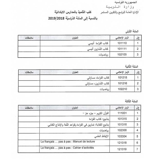 نشرت وزارة التربية اليوم الاثنين 30 جويلية 2018، قائمة الكتب المدرسية للسنة الدراسية 2018-2019 لجميع السنوات.