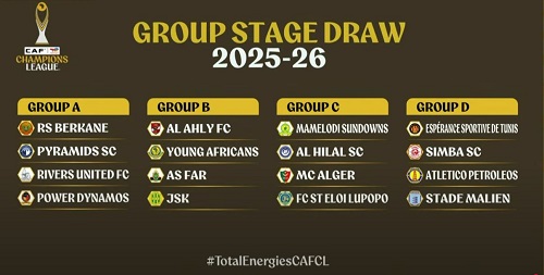 دارت اليوم الإثنين 03 نوفمبر 2025 بمدينة جوهانسبرغ في جنوب إفريقيا قرعة دور المجموعات لمسابقة رابطة  الابطال الافريقية .