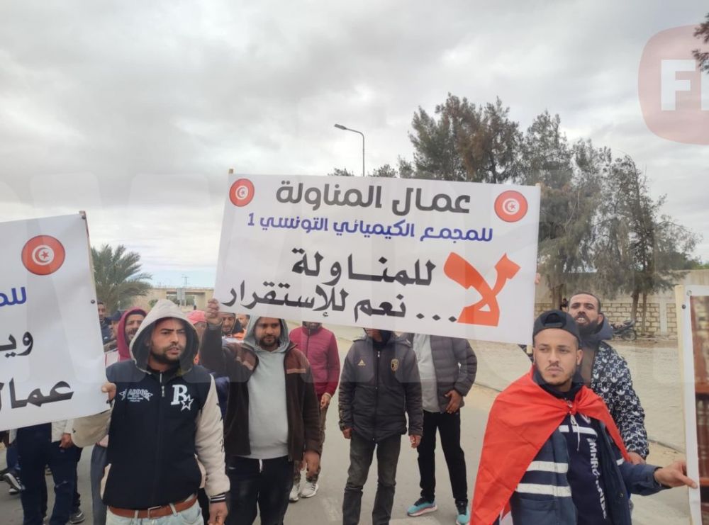 تتواصل التحركات الاحتجاجية لعمّال المناولة بالمجمع الكيميائي التونسي معمل المظيلة 1، حيث تم صباح اليوم الثلاثاء، تنظيم وقفة احتجاجية بالطريق الجهوية 123 الرابطة بين المظيلة و قفصة على مستوى الحي العمالي، و ذلك للمطالبة بالإدماج صلب المجمع الكيميائي و القطع مع المناولة.