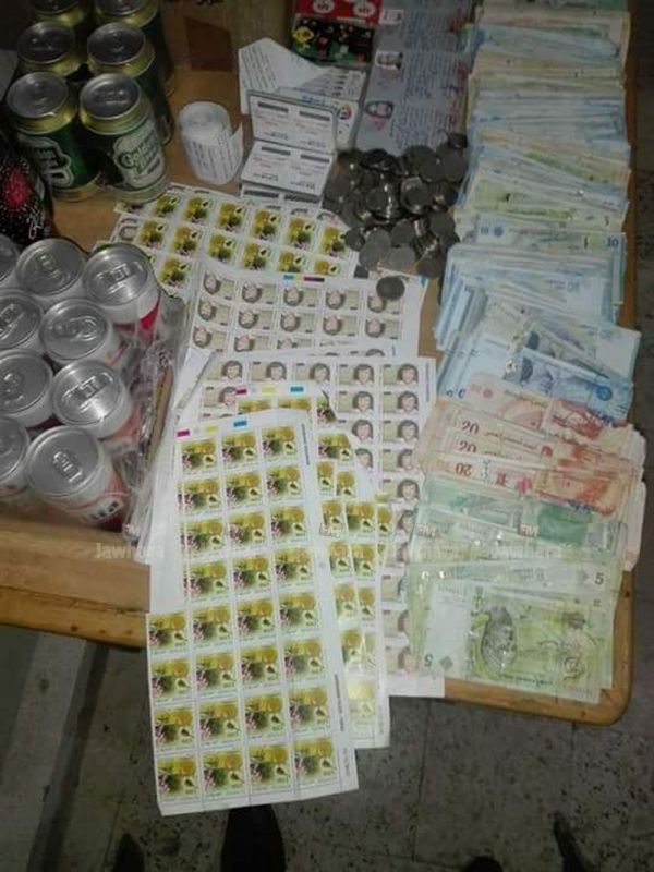 تمكنت فرقة الأبحاث والتفتيش للحرس الوطني بقصر قفصة اليوم من حجز مبالغ مالية و الة حاسبة و كمية كبيرة من السجائر وعدد هام من الطوابع البريدية و الجبائية و مشروبات كحولية و بطاقات شحن هواتف، تم الاستيلاء عليها خلال أعمال الشغب والنهب بالجهة، وفق ما أكده مصدر أمني لمراسل "الجوهرة أف أم".