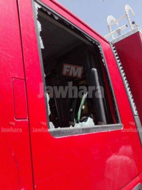 و افاد العقيد عادل العبيدي المدير الجهوي للحماية المدنية بقفصة في تصريح لمراسل الجوهرة "اف ام" بالجهة أنه وعلى اثر اعلام القاعة بحريق بأحد الأحياء القريبة تحولت شاحنة إطفاء و سيارة إسعاف بسرعة لم تتجاوز 8 دقائق وأضاف أنه تم الاعتداء عليها لحظة وصولها بالحجارة وتهشيم بلور سيارة الاسعاف و شاحنة الاطفاء وأفاد أنه تم تقديم شكاية إلى منطقة الأمن الوطني بقفصة لمعرفة الأشخاص و الأسباب و تتبعهم عدليا.