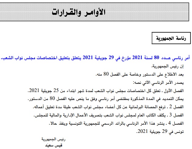 الأمر الرئاسي عدد 80 لسنة 2021: