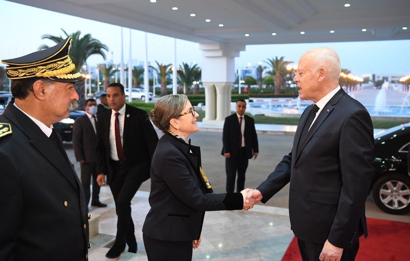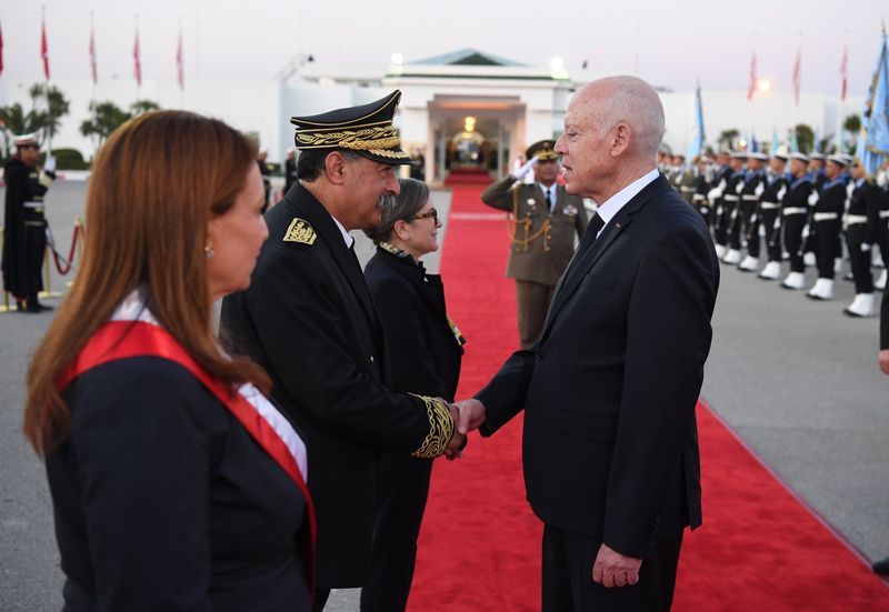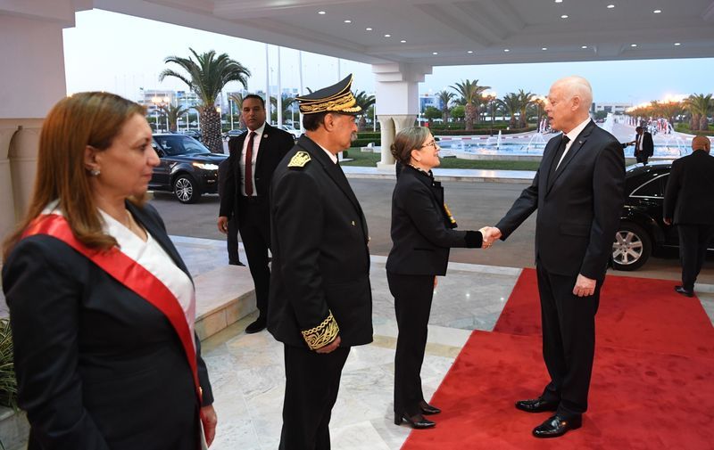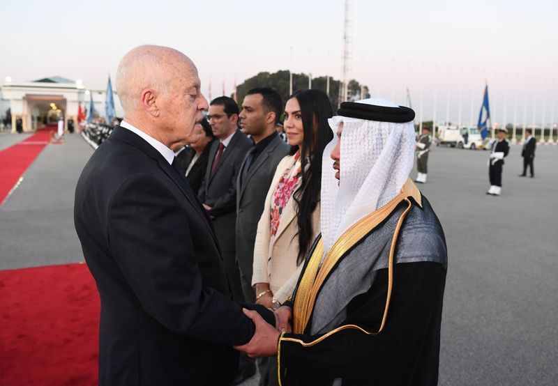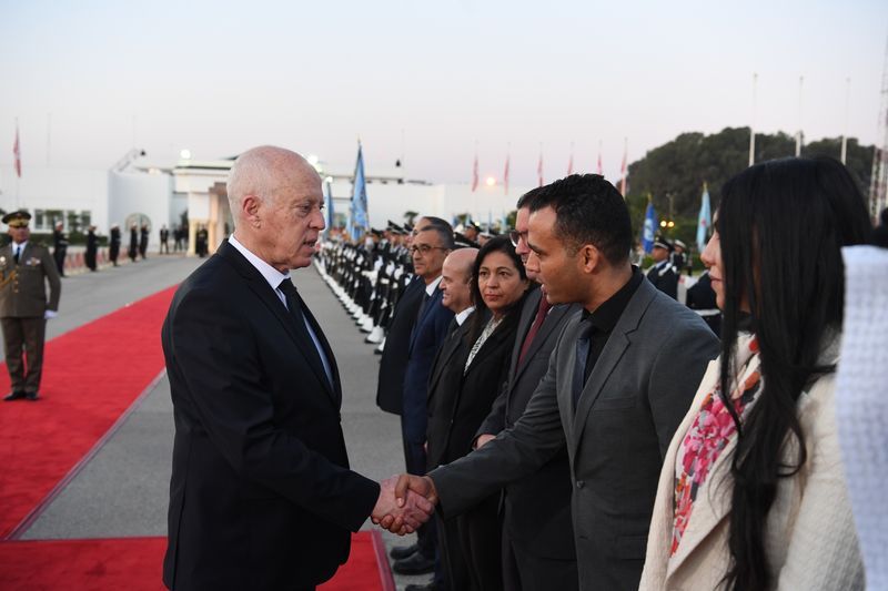 وكان في توديع رئيس الدولة بالمطار، رئيسة الحكومة، نجلاء بودن رمضان، ووالي تونس، كمال الفقي، ورئيسة بلدية تونس، سعاد عبد الرحيم وأعضاء الديوان الرئاسي، و سفير الإمارات العربية المتحدة بتونس، راشد المنصوري.