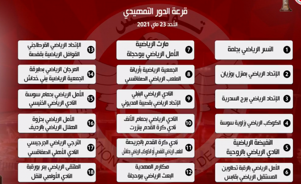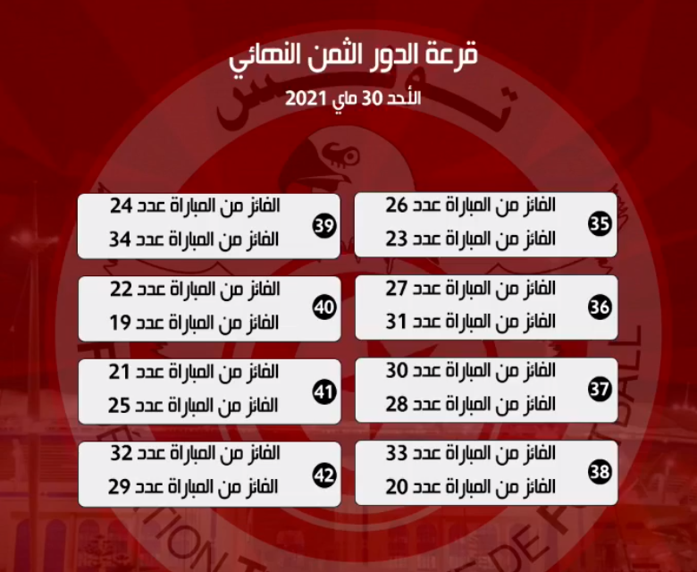 دارت اليوم الأحد 16 ماي 2021 قرعة كأس تونس لكرة القدم ' "نسخة المرحوم صالح بن يوسف'"، و التي اسفرت عن النتائج التالية :