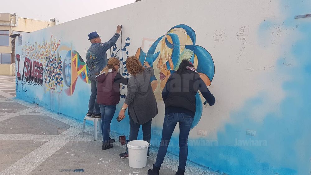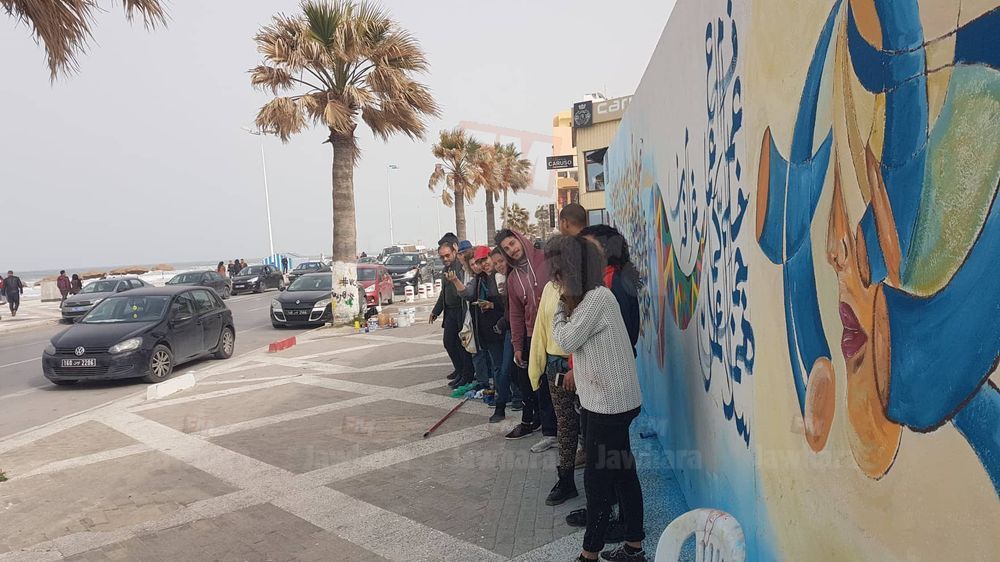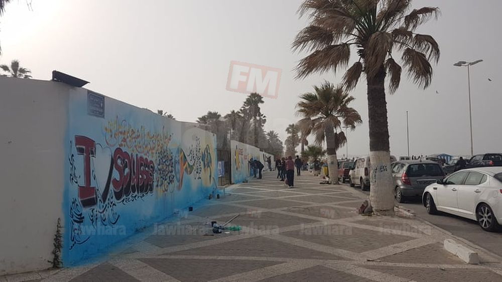 اكتسى كورنيش بوجعفر بسوسة بحلة جديدة، وزيّنت جداريات ولوحات فنية من إنجاز مجموعة من الشباب الجدران على طول الطريق المقابلة للبحر.
