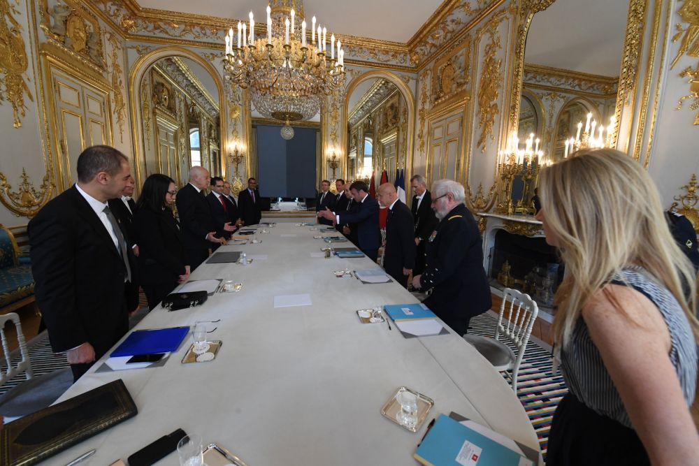 وتُظهر الصور، حفاوة الاستقبال الذي حظي به الرئيس التونسي من قبل مُضيفه، قبل إجراء محادثات ثنائية بين وفديْ البلديْن، في إطار زيارة صداقة وعمل يؤديها سعيّد إلى فرنسا.
