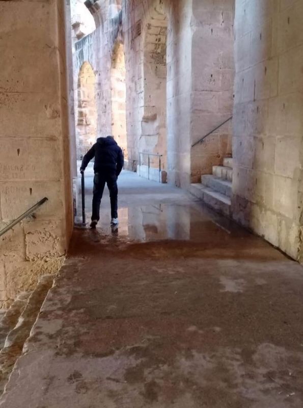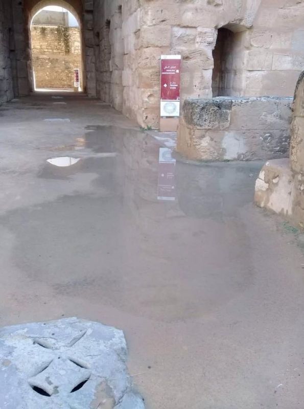نشرت الصفحة الخاصة بجمعية "الجم السياحية الثقافية ,التراث والتنمية" على منصة التواصل الإجتماعي فايسبوك صورا حديثة تظهر بركا عديدة من المياه داخل المسرح الأثري بالجم وتأثر بعض أعمدته بسبب غياب أشغال الترميم والصيانة.