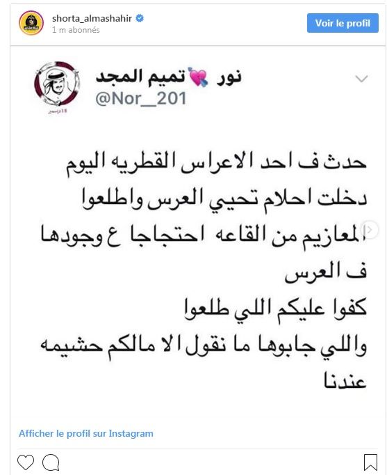وشاركوا صورا من حفل أحلام في قطر والذي ارتدت فيه فستان لونه "عنابي" بلون العلم القطري وغرد أحدهم :"أنه حتى لو ارتدت ذلك اللون فإن أهل قطر يعلمون حقيقتها" مضيفا: "العنابي ليس مجرد لون ولكن إحساس ونبض في قلب كل قطري ومحب لهذا الوطن أما أنت مع احترامي لك العنابي ما يليق إلا على من يحبه من القلب".