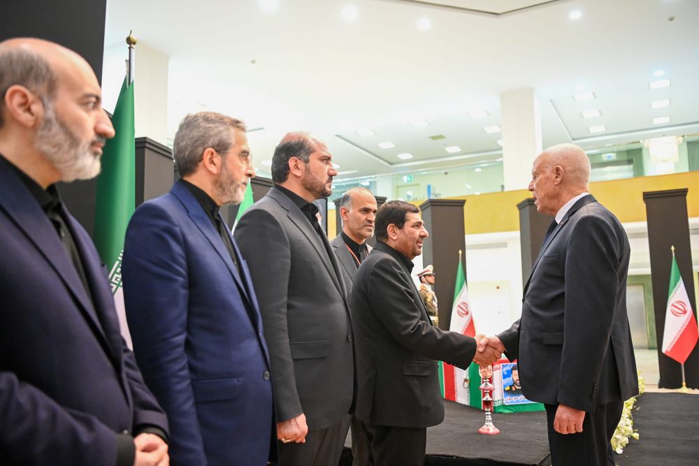 نشرت رئاسة الجمهورية صورا لمراسم تقديم رئيس الجمهورية قيس سعيد لواجب العزاء في وفاة إبراهيم رئيسي، رئيس الجمهورية الإسلامية الإيرانية.