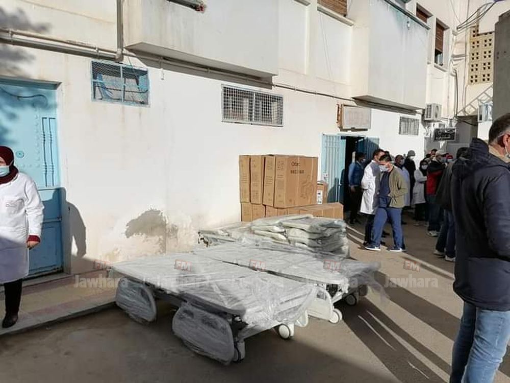 وصلت اليوم الخميس إلى المستشفى الجهوي بالقصرين تجهيزات و معدات طبية متمثلة في عدد من الأسرة المجهزة الخاصة بالإنعاش و الكراسي المتحركة و وسائل حماية و آلات للتنفس ببادرة من فنان الراب كريم الغربي.