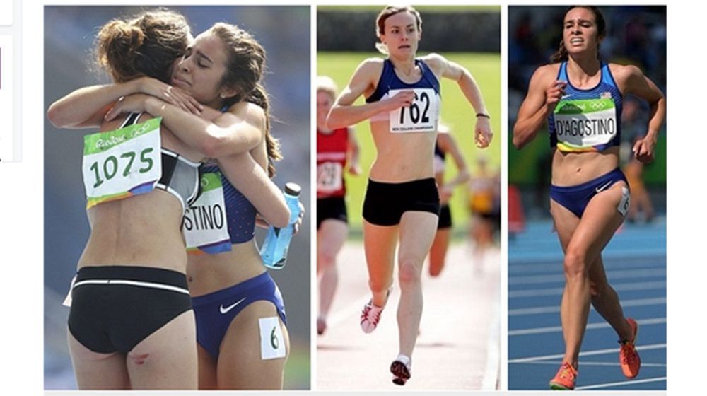 فقد تعثرت الأميركية "ابي دانوستينو" "Abbey D'Agnostino" فجأة في الدقيقة العاشرة، وعرقلت قدمي منافستها النيوزيلندية "نيكي هامبلين" Nikki Hamblin"" فأسقطتها معها على أرض مضمار السباق وكان بإمكان النيوزلندية النهوض لمتابعة السباق ولكنها وقفت لتساعد زميلتها على النهوض رغم انها لم تكن تعرف عنها شيئا سوى انها منافستها.