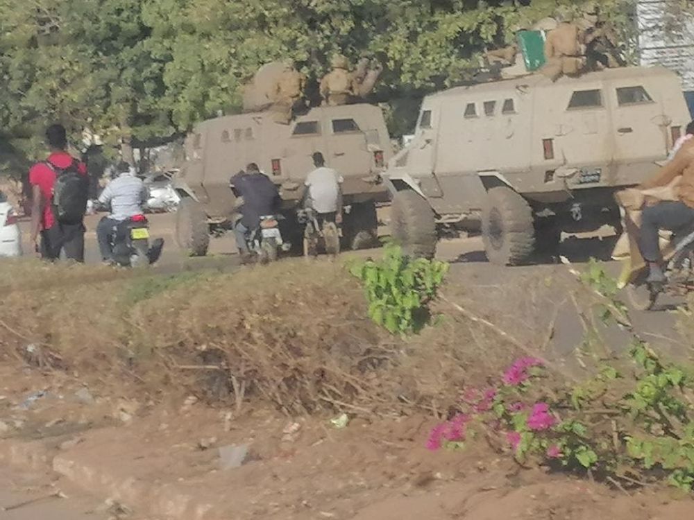 وشوهدت عربات مدرّعة تابعة للرئاسة وقد اخترقتها عدة رصاصات قرب مقر إقامة الرئيس صباح اليوم الاثنين، وكانت إحداها ملطخة بالدماء. وأفاد سكان في الحي الذي يسكن به الرئيس عن وقوع إطلاق نار كثيف خلال الليل. كما قال شهود عيان بأنهم رأوا مروحية تحلّق فوق المكان.