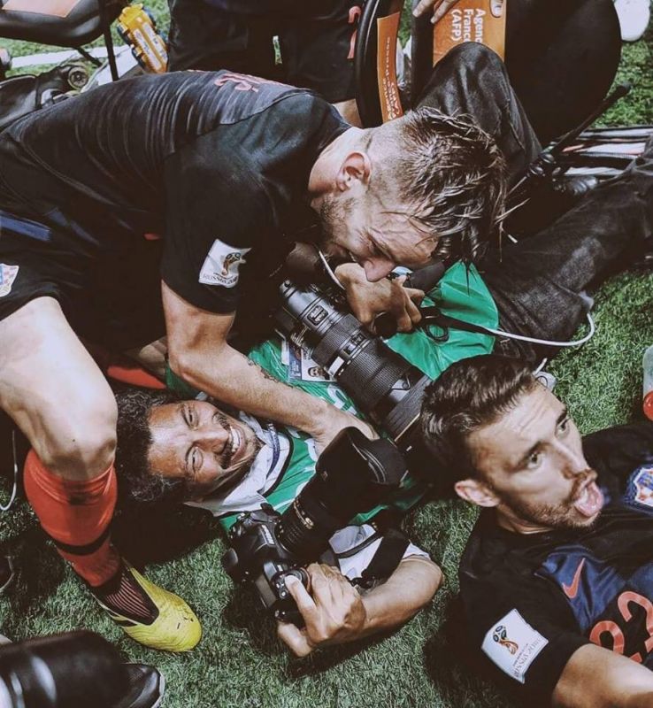 سقط لاعبو المنتخب الكرواتي لكرة القدم فوق أحد مصوري وكالة "فرانس برس" أثناء احتفالهم بالهدف الثاني الذي سجلوه في مرمى المنتخب الانكليزي في الدور نصف النهائي، والذي ضمن لهم بلوغ المباراة النهائية للمرة الأولى في تاريخهم.
