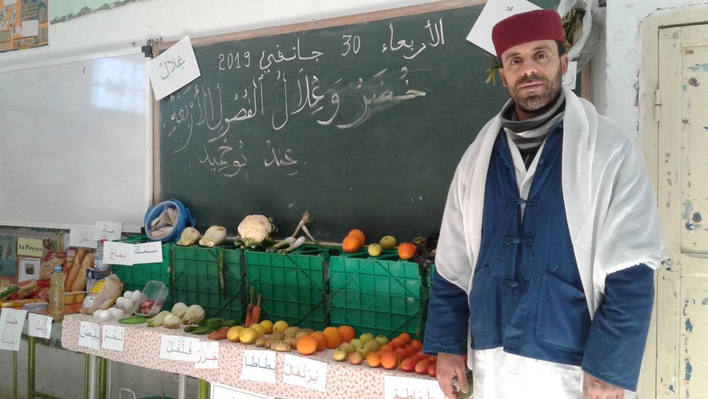 و نشر المعلّم "أحمد البجاوي" تدوينة على صفحته الخاصة على موقع التواصل الاجتماعي "الفايسبوك" مرفوقة بصور لقاعة التدريس التي عرض فيها بشكل جميل و متناسق بعض المواد الغذائية لتبسيط مادة الإيقاظ العلمي لتلامذته، و كتب المعلم على السبورة :