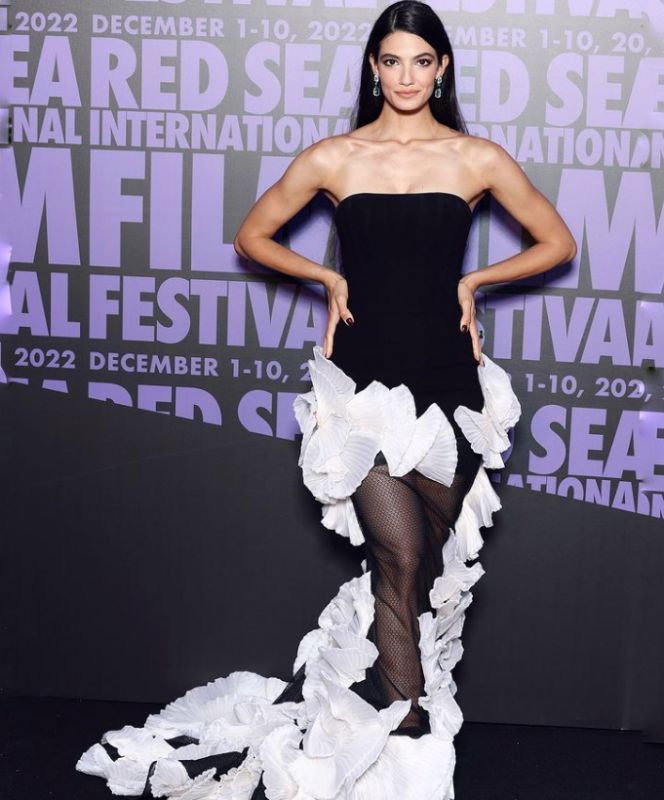تألّقت العارضة التونسية العالمية ريم السعيدي بثوب تزينه وردة كبيرة عند الصدر من دار Sara Mrad، وقد نسّقت إطلالتها مع مجوهرات ماسية من دار Chopard.
