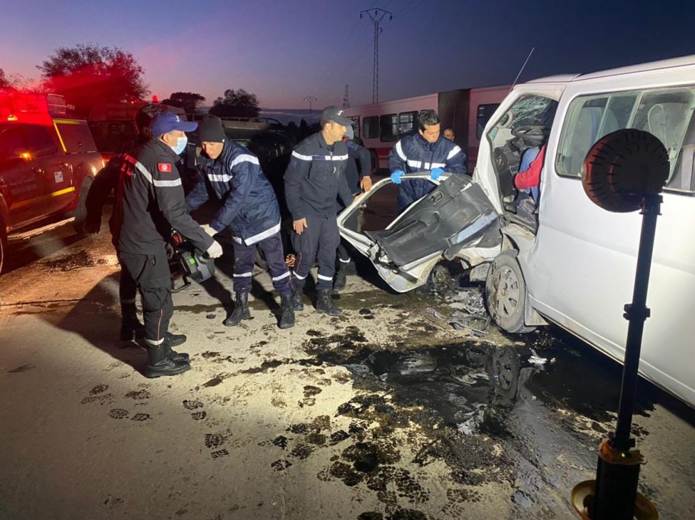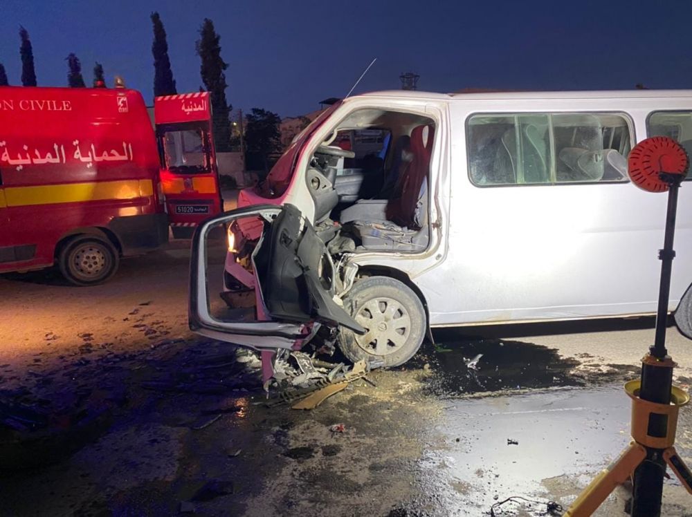 وتتمثل صورة الحادث في اصطدام سيارة نقل جماعي و سيارة خاصة، وفق ما جاء على الصفحة الرسمية للإدارة الجهوية للحماية المدنية بنابل، على "الفايسبوك".