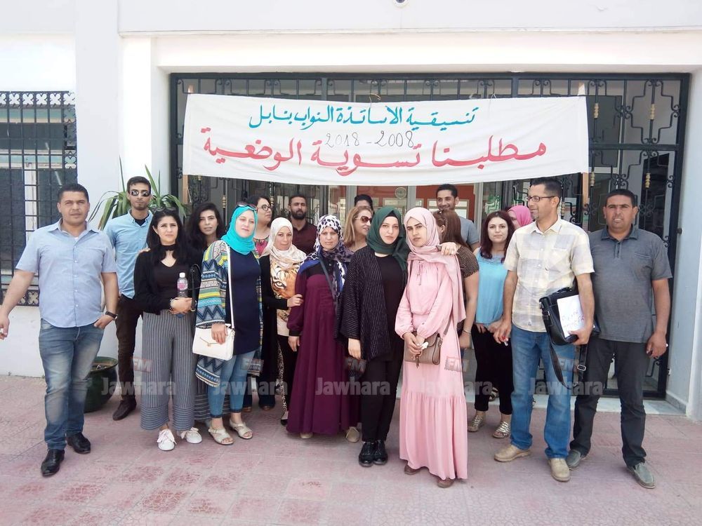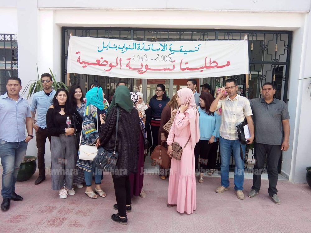 ويطالب المعتصمون بالانتداب وتسوية وضعية الأساتذة النواب 2008\2018 على دفعات تحت سقف زمني محدد على غرار المعلمين النواب.