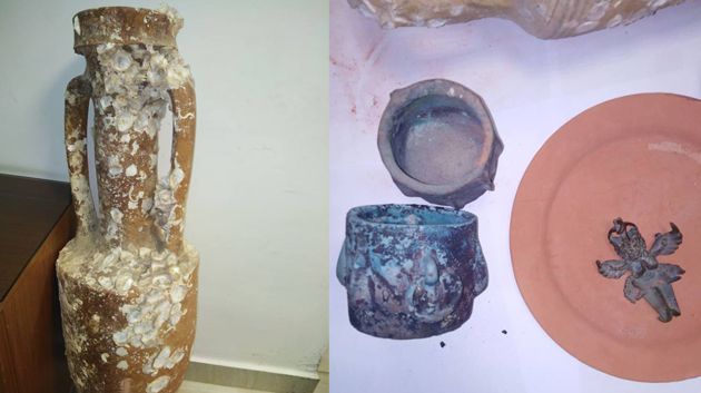 وأوضحت وزارة الداخلية في بلاغ لها مساء الأربعاء، أنه تم حجز هذه القطع الأثرية المتمثلة في جرار وأوان فخارية وقناديل وقطع نقدية وفسيفساء تعود إلى حضارات تاريخية مختلفة، إثر القيام بعملية مداهمة صحبة خبراء بالمعهد الوطني للتراث منزل شخص عمره 71 سنة.