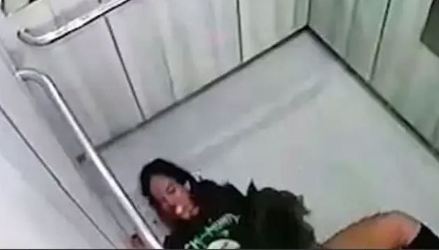 وقد حاولت دفعه بعيداً عبر وضع يدها الأخرى أمام وجهه، وتمكنت لثوان فقط من الضغط على زر المصعد للنزول إلى الردهة، حيث هرع الموجودون إلى مساعدتها.