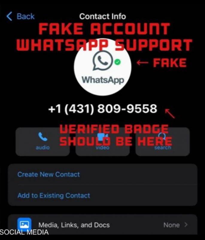 وتظهر صورة نشرها الموقع مقارنة بين معلومات حساب الدعم الفني الحقيقي في "واتساب"، وحساب الدعم الفني المزيف.