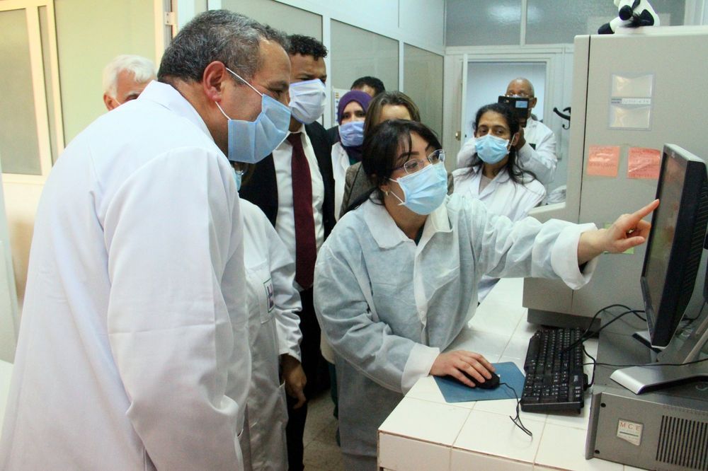 تحول اليوم الجمعة 10 أفريل 2020 ،وزير الصحة عبد اللطيف المكي إلى المستشفى الجامعي شارل نيكول بالعاصمة، حيث تقدم بتحية إكبار وتقدير للفريق الطبي وشبه الطبي العامل بالمخبر المرجعي للتحاليل الجرثومية على الجهود التي ما إنفك يبذلها في إطار إحكام الخطة الوطنية للتصدي لإنتشار فيروس كورونا.