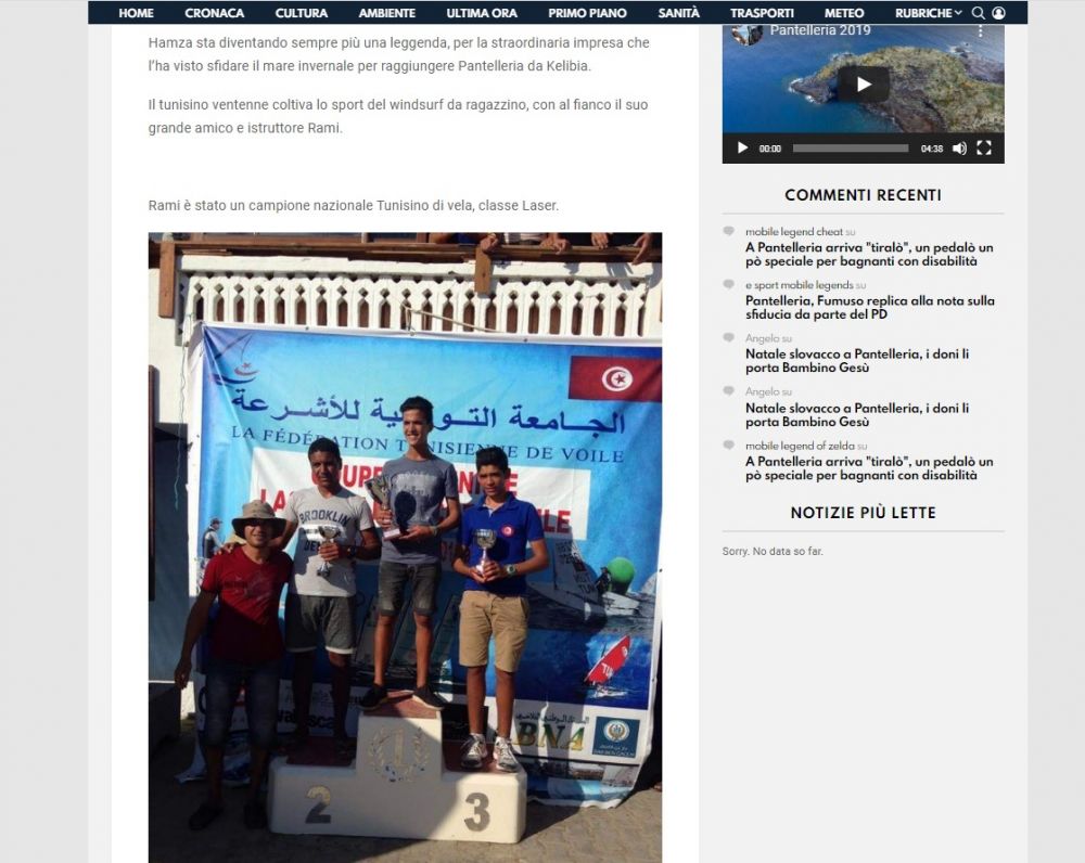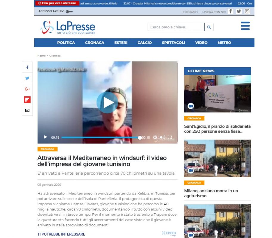 بعد أن حظي باهتمام نشطاء مواقع التواصل الاجتماعي في تونس، من خلال ظهوره في فيديو وهو على متن لوح شراعي، معلنا وصوله إلى جزيرة "بنتلاريا" و خوضه غمار رحلة بحرية خطيرة امتدت لمسافة 70 كلم، انطلقت من سواحل مدينة قليبية التونسية، غامر فيها بحايته، نجح الشاب التونسي "حمزة وراسي"، في استقطاب اهتمام الإعلام الإيطالي الذي خصصّ له مجموعة من التقارير و متابعة خاصة لوضعيته.